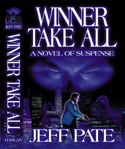 Winner Take All was my first project for North Carolina publisher Harlan Publishing, in 1999. The company was actually a start-up by the author of the book in order to publish himself. The author had a vague idea of how he wanted it to look- i.e., dark cityscape, menacing eyes in the sky looking down on the hero of the story, a law enforcement agent with his weapon out. Given the low budget for this project, several of the elements came from the Web. The hero's head and the city skylines were all downloaded. The hero's body and the menacing eyes were photographs of people I knew.